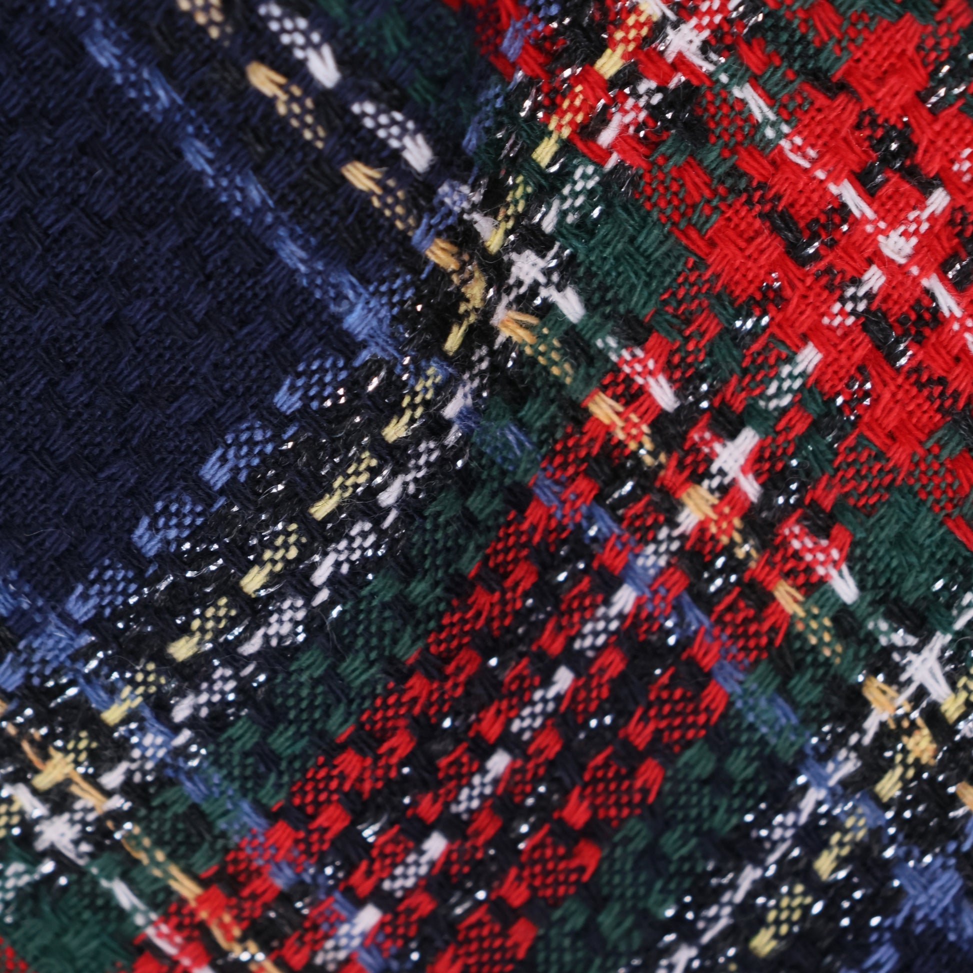 Diseño clásico a cuadros en tonos azul marino y rojo.