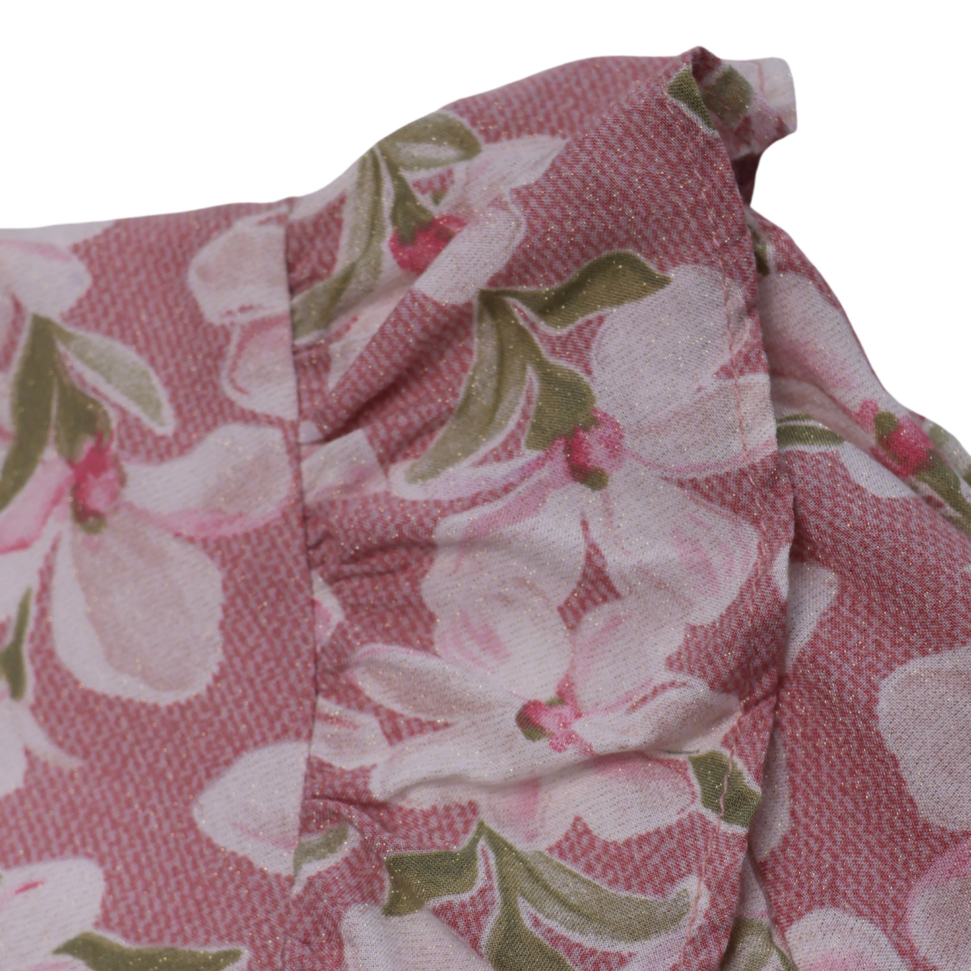 Color palo rosa con delicado estampado floreado que resalta por su ternura y estilo romántico.
