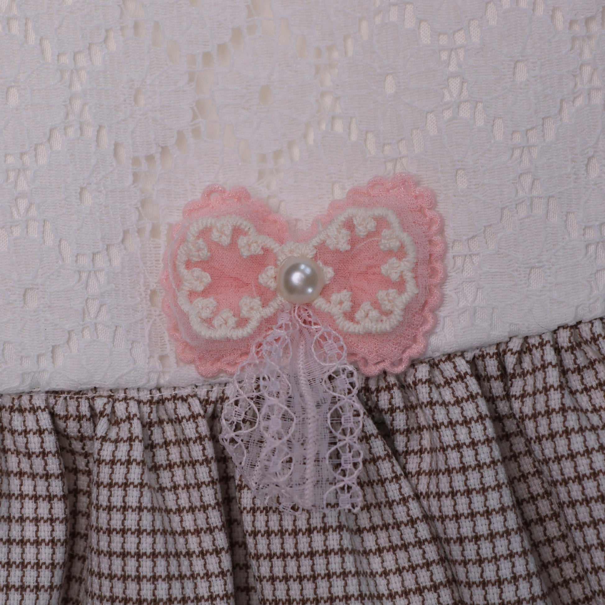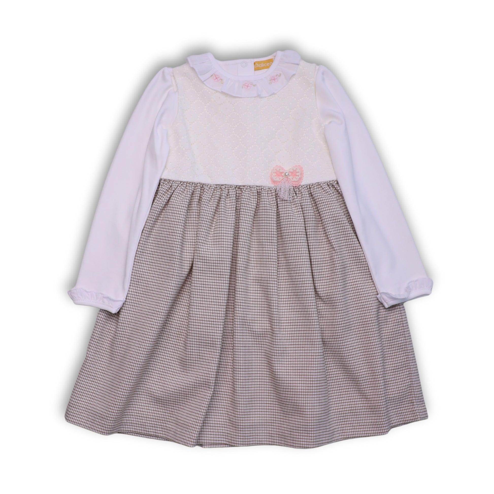 VESTIDO DE NIÑA DE DOS PIEZAS: MANGA CERO CON ENCAJE Y FALDA A CUADROS + POLO MANGA LARGA CON CUELLO BEBÉ