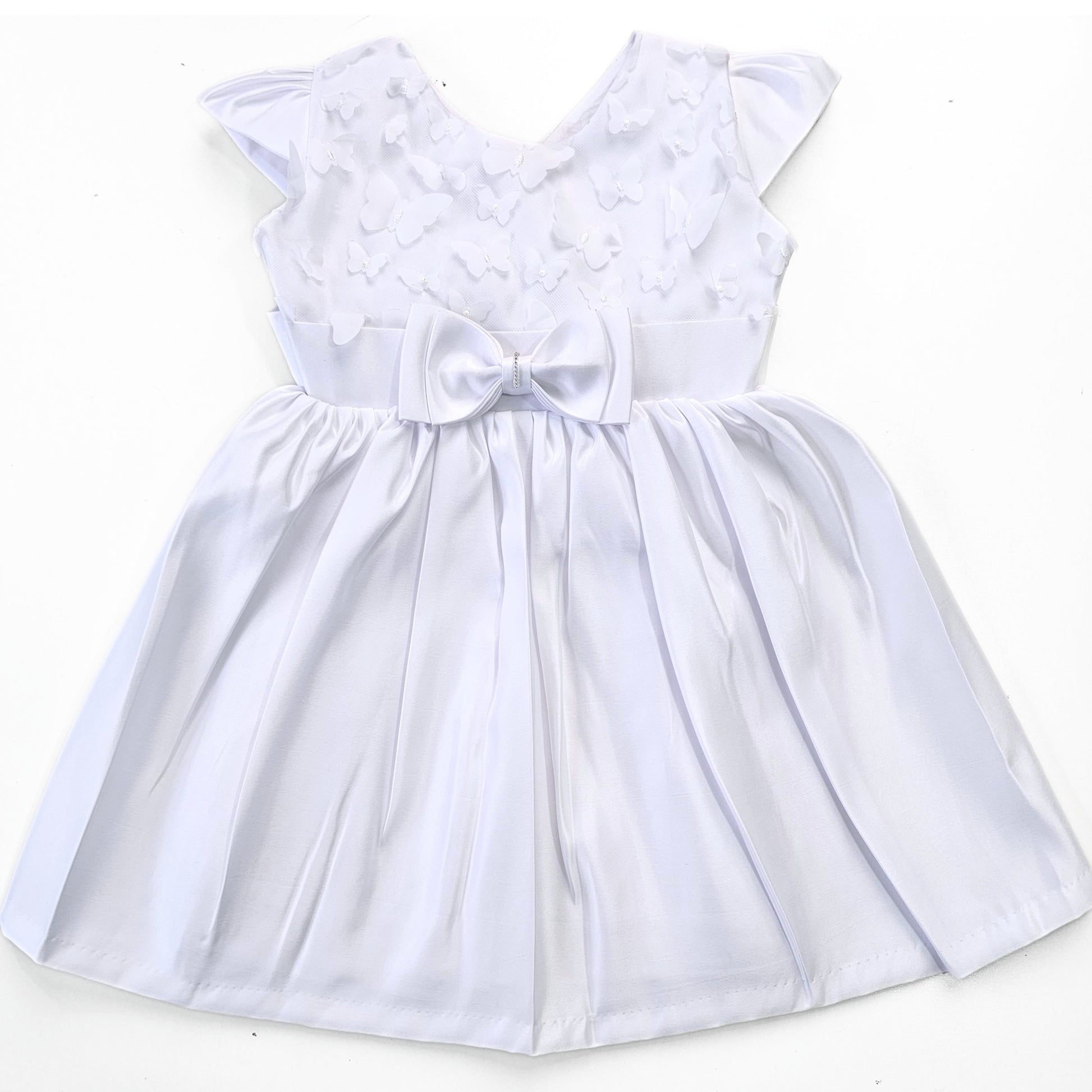 Este vestido blanco con delicadas mariposas es ideal para acompañar a tu pequeña en sus días más especiales. Confeccionado en una tela fresca y suave, su corte cómodo permite moverse libremente mientras añade un toque de ternura y estilo. Perfecto para paseos, fiestas o cualquier ocasión donde quiera brillar.