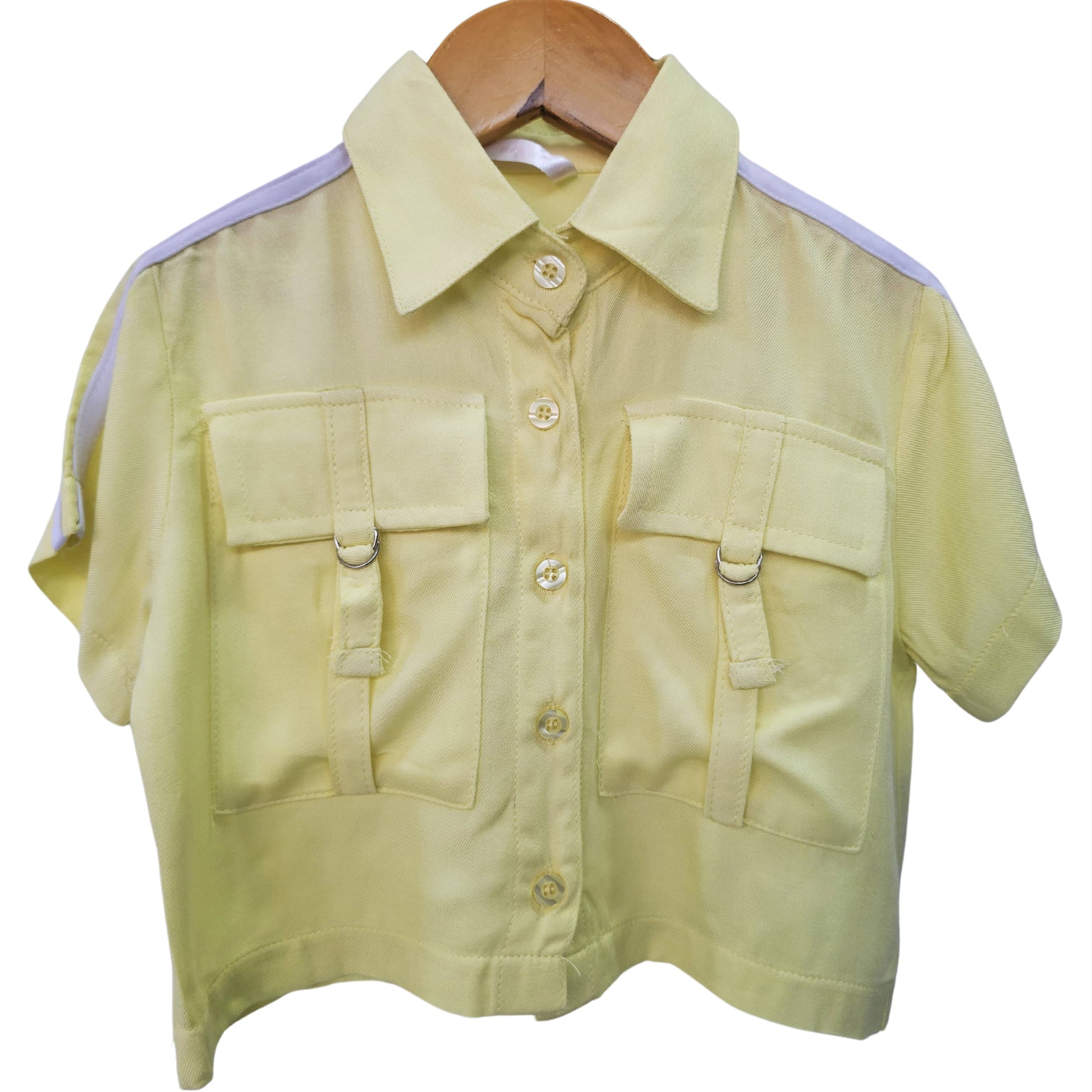 Esta blusa amarilla, confeccionada en lino suave, es ideal para un look fresco y cómodo. Su diseño de manga corta con prácticos bolsillos frontales le da un toque funcional sin perder estilo. Perfecta para combinar con faldas, pantalones o shorts en cualquier salida casual.