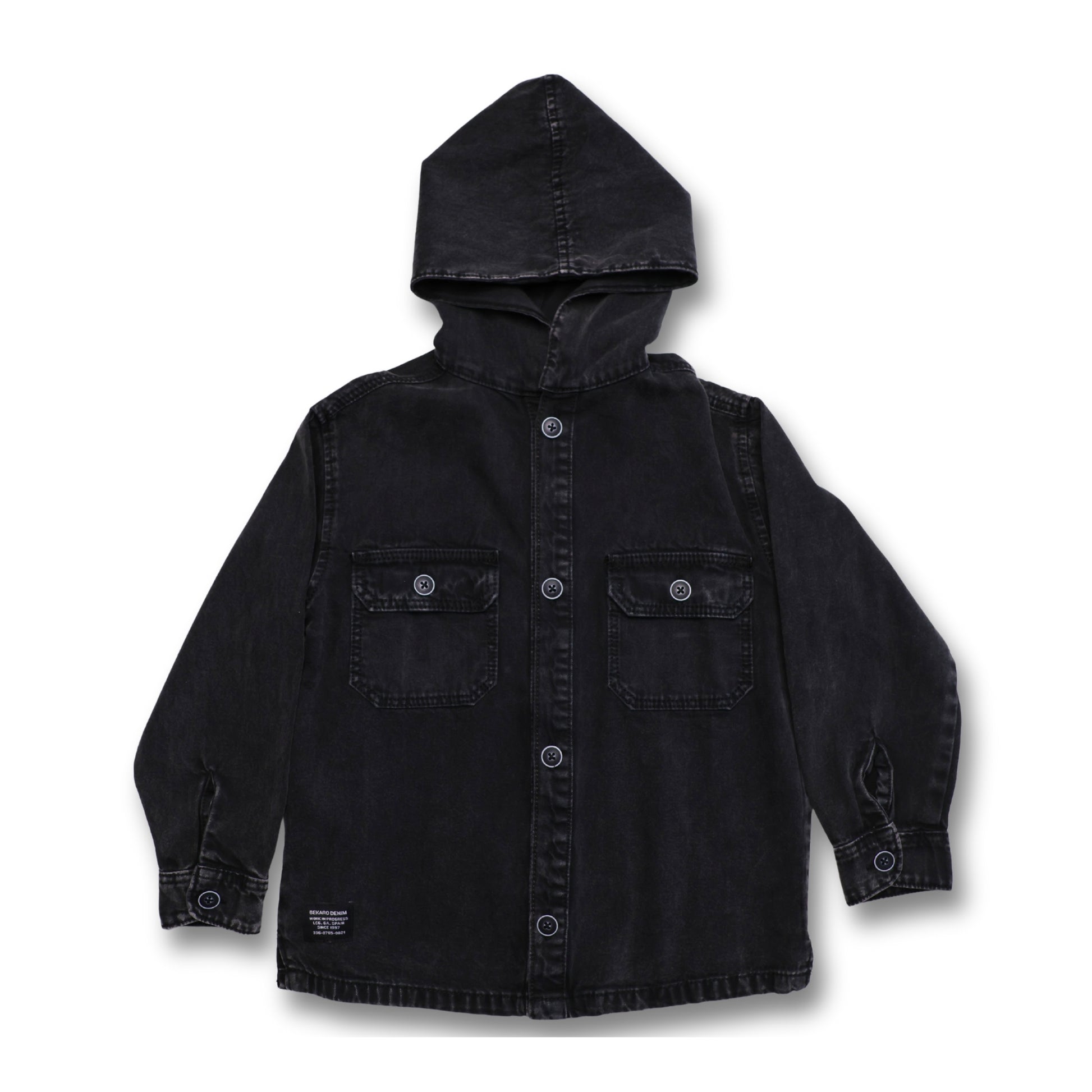 Camisaco de niño confeccionado en denim negro de excelente calidad, resistente y suave al tacto.