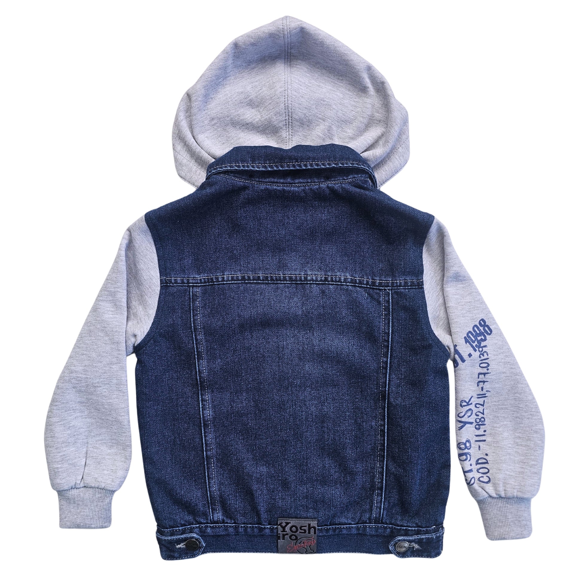 Esta casaca de jean azul con capucha es perfecta para abrigarse en días frescos, combinable con todo y diseñada para jugar con estilo y comodidad.