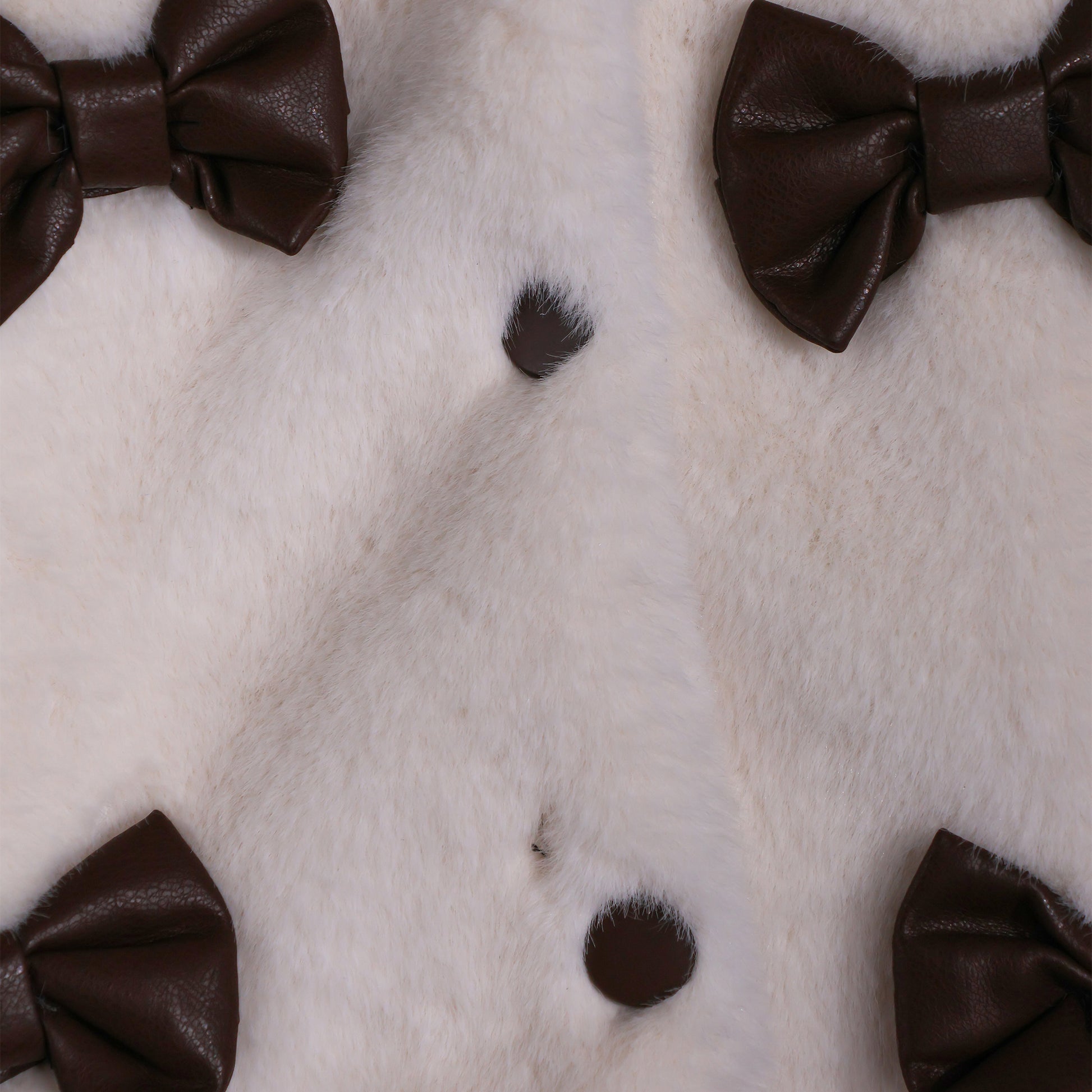 De textura aterciopelada y agradable al tacto, este chaleco añade un toque de sofisticación y abrigo al conjunto. Cuenta con cuatro delicados lazos frontales decorativos elaborados en material tipo cuero, que aportan un contraste sutil y elegante. Su diseño abierto permite mayor libertad de movimiento y lo convierte en una prenda ideal para superponer.