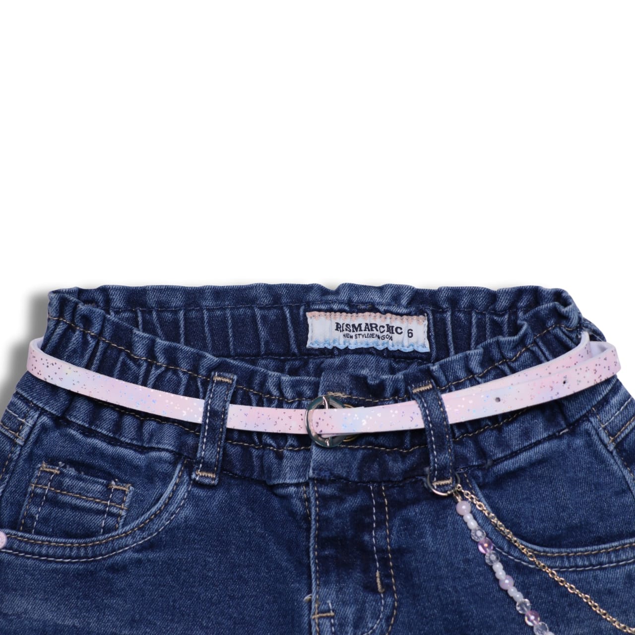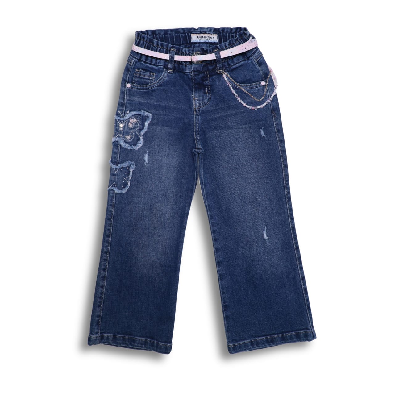 Pantalón Palazzo para Niña, en tela jeans – Bordado de Mariposa