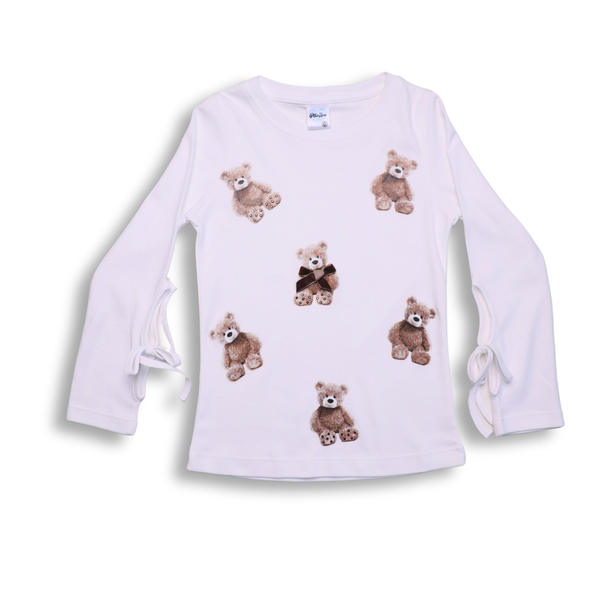 Polo de niña manga larga con aberturas decorativas y estampado de ositos – 100% algodón