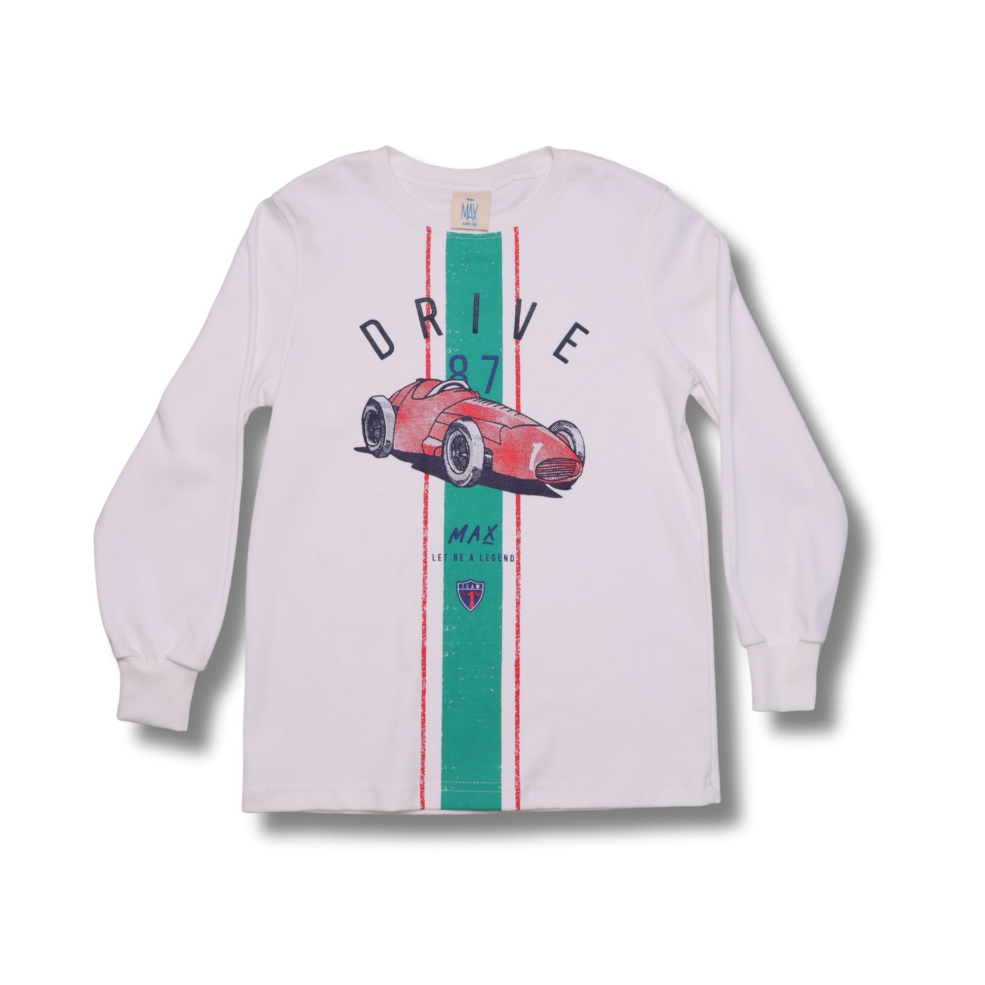 Polo manga larga para niño, elaborado en algodón 100% pima nacional, suave y fresco, ideal para acompañarlo en sus días de juego y aventura. Tiene cuello redondo, puños en las mangas que aseguran un ajuste cómodo y un diseño que roba miradas: un estampado frontal con la frase “Drive 87” acompañado de un auto a toda velocidad. Un estilo lleno de energía para los pequeños fanáticos de los motores.